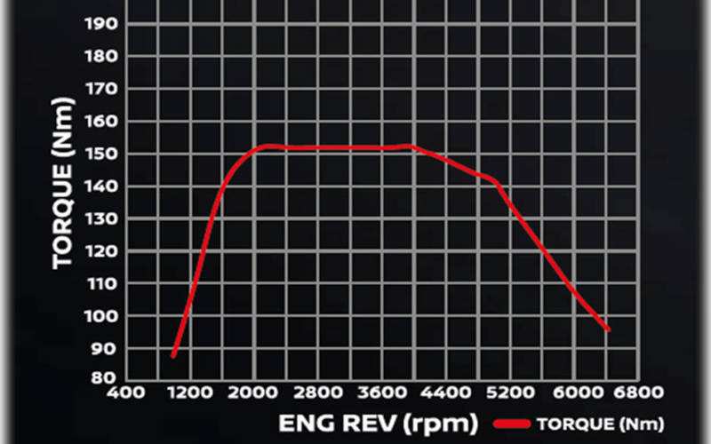 The 1.0 litre turbo engine in the new Nissan Almera Turbo unleashes a maximum power output of 100PS and high torque of 152Nm (flat torque) at a low 2,400 to 4,000 rpm. This means that the 1.0 litre turbo engine is able to achieve an early torque kick-in at 2,400rpm, and maintain its maximum torque until 4,000rpm, or more importantly with the constant torque available at an rpm range most operated in daily drives; overtaking has never been easier and less stressful.