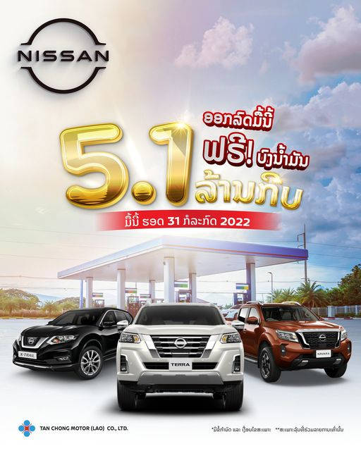 Be A Proud Owner and bring home a Nissan Terra, Nissan Navara or Nissan X-Trail during the July Promotion campaign period and get "FREE Fuel Voucher" worth 5.1 million kip. (*T&C apply)