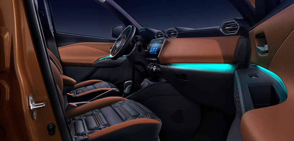 Step inside the Nissan Magnite and experience a perfect fusion of bold aesthetics, smart functionality and ergonomic seating. Designed with precision to details that enhances your journey with style and comfort.