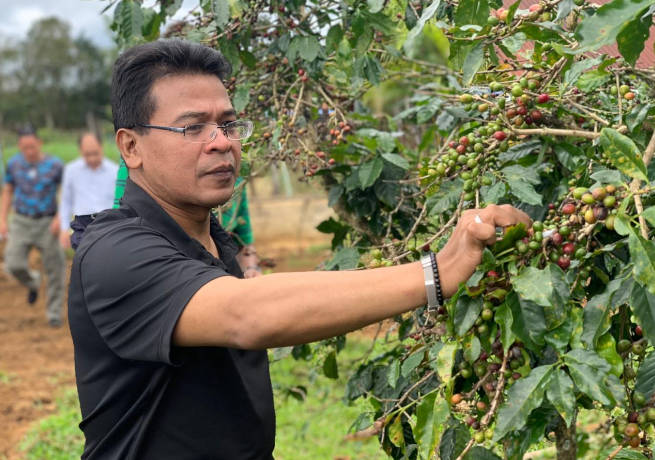 H.E. Mohd Aini Atan, Ambassador of Malaysia to the Lao P.D.R and Mr. Alan Wong Chee Kong, General Manager, Delta Agriculture Industry Co., Ltd. (Delta Lao Coffee Plantation & Cow Farm) at Delta Café.