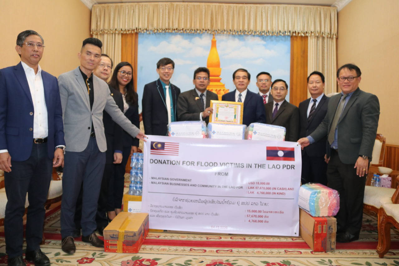 H.E. Ambassador Mohd Aini Atan, the Ambassador of Malaysia to Lao PDR handed over a contribution to H.E. Dr. Khampheng Saysompheng, Minister of Labour and Social Welfare for the flood victims in Lao PDR, in cash and in kind worth approximately USD 21,000.00 in total.