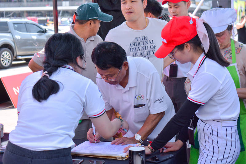 Customers eagerly waiting in queue to register